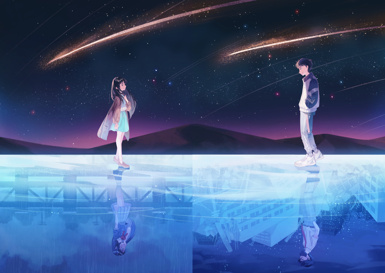 《遺落在流星下的謊言(上&下)》封面插畫
